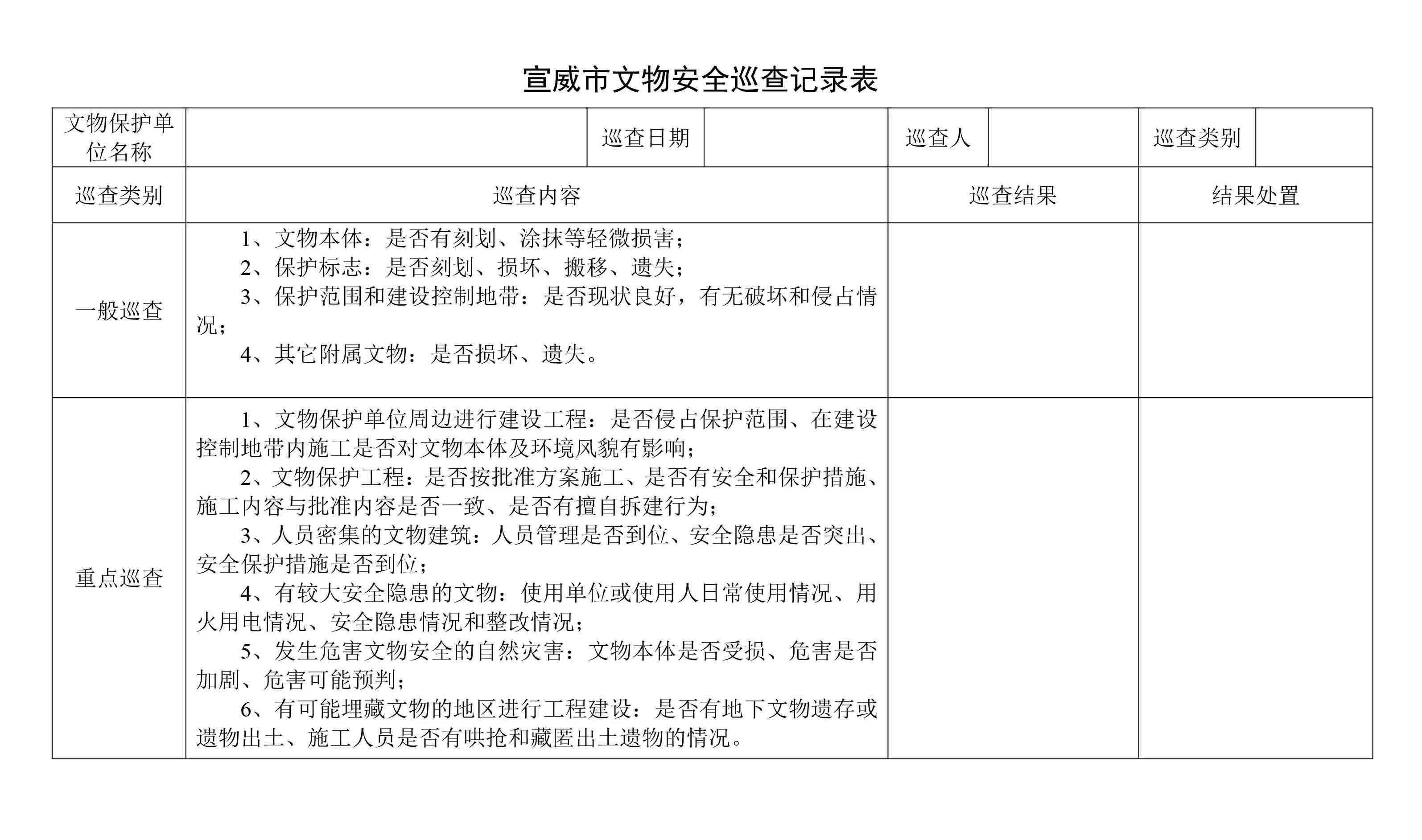 宣威市文物安全巡查记录表